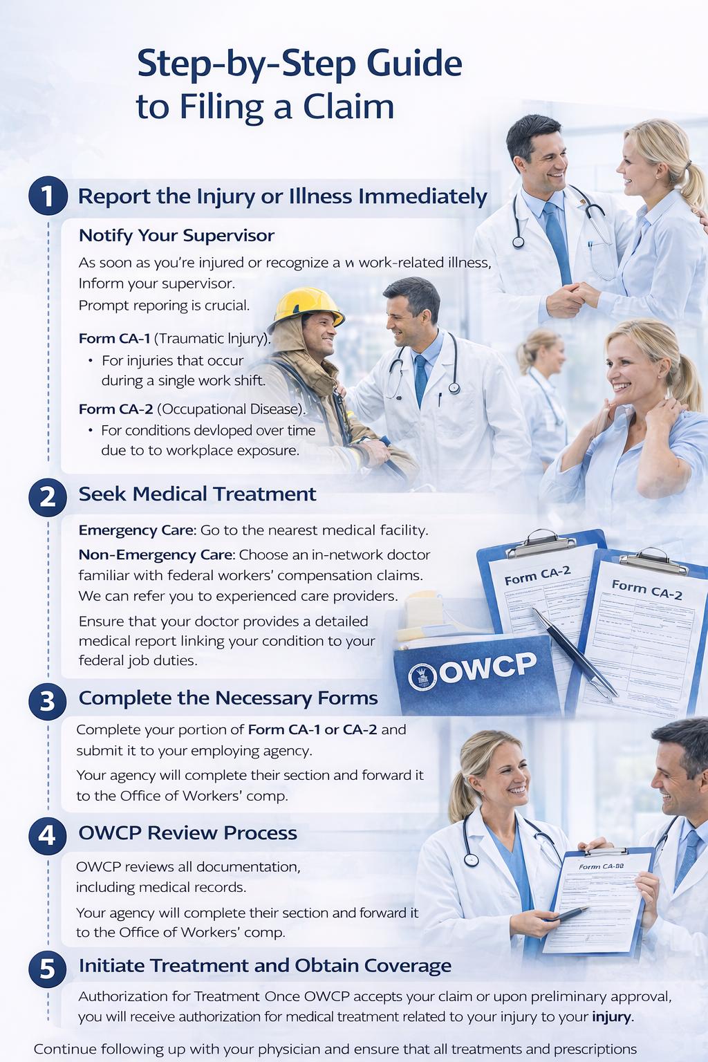 We provide comprehensive support to make the federal workers’ compensation claim process easier: